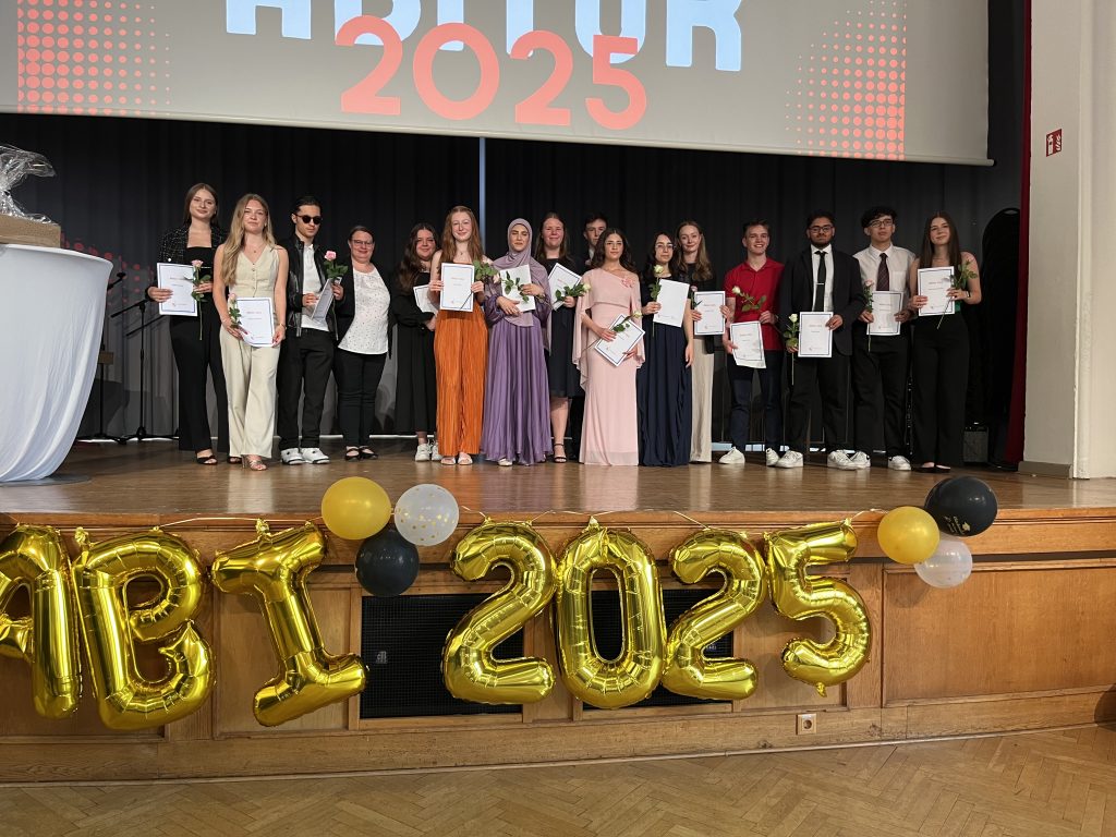 Ein Anspruch auf Vollständigkeit besteht nicht. Die Fotos werden nicht namentlich untertitelt. Alle Fotos bleiben bis zur nächsten Feier hier – danach finden Sie die Kursfotos noch im Untermenü „Abiturient*innen ab 2016“.
